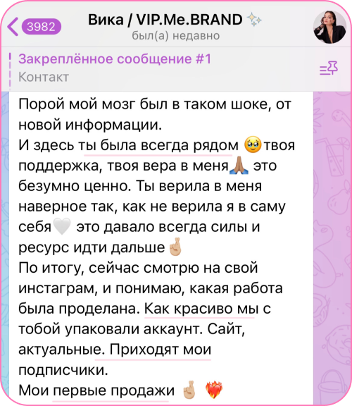 (в новых аккаунтах Inst + TG набрала 4.000+ подписчиков за год)